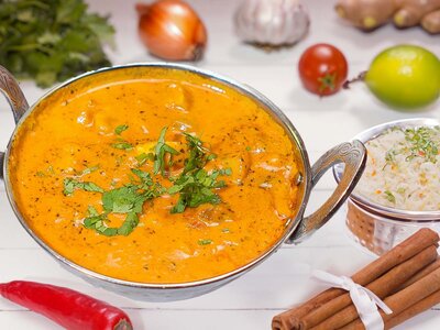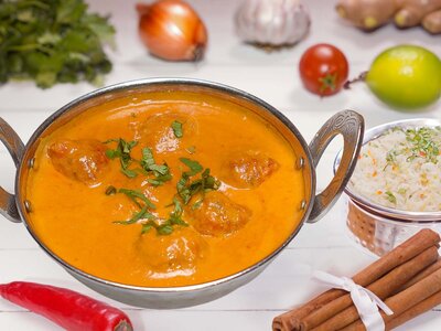 Chicken thigh meat cooked with cream, masala sauce and spices.