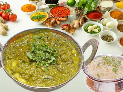 Spinach cooked with homemade cheese, onions, garlic, ginger, tomatoes, cream and spices